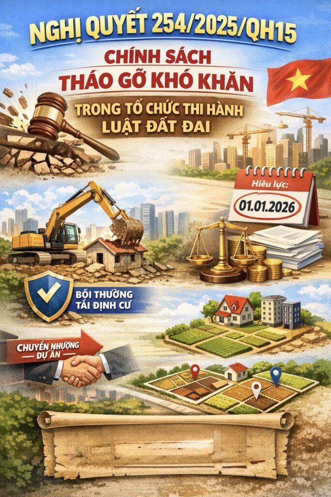 - Nghị quyết 254/2025/QH15 Chính sách tháo gỡ khó khăn trong tổ chức thi hành Luật đất đai.